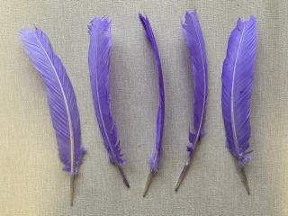 アヒルの羽根です。軸、羽根ともにしっかりしていて、頭飾りにも効果的です。なるべく仕入れた状態の長さで販売していますが、ご希望があれば合わせ先端を丸く切り揃えます。