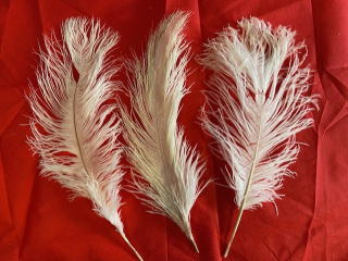 ダチョウの羽根です。今回のコステイロには土台のアクセントにあしらっています。頭飾り等にもよく使用されています。当店では、各色、各サイズを取り揃えてありますのでお問合せ下さい。